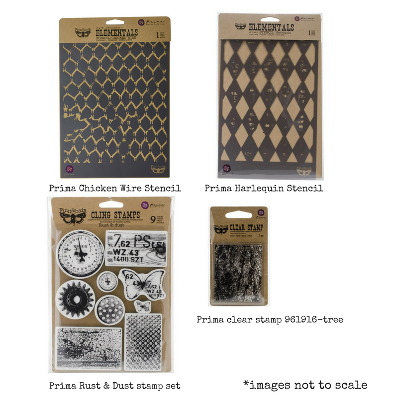 Not a 'little' lot at all! We have 2 stencils, a set of cling mounted stamps and a fabulous clear background stamp up for grabs!