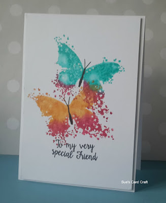 Sue won the challenge with this beautiful card. We loved the wonderful effect Sue managed to achieve with the butterflies, such a gorgeous blast of colour!
