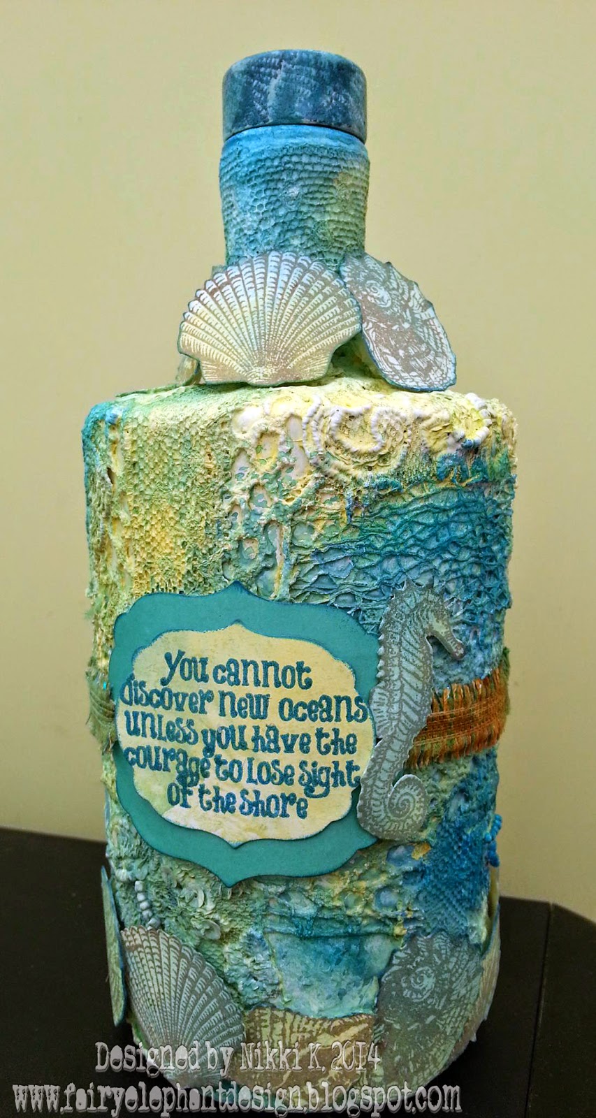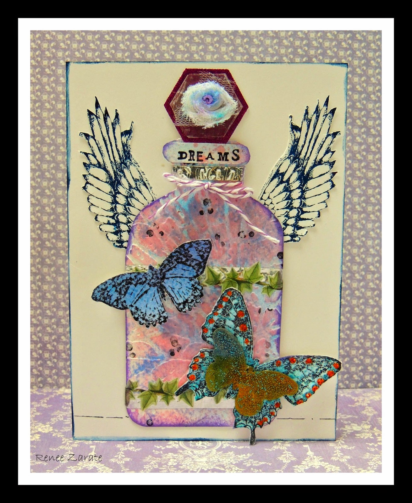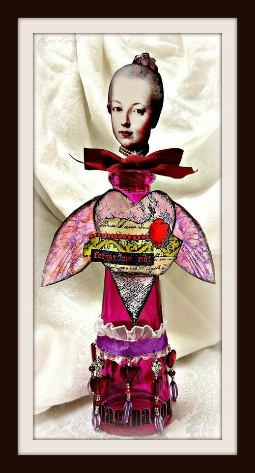 France Papillon has a wonderful project in the May issue, using recycled glass bottles. The free cover stamp this month also features bottles, and this gorgeous design by R Maria Sabina has been used to great effect on pages 41-3.